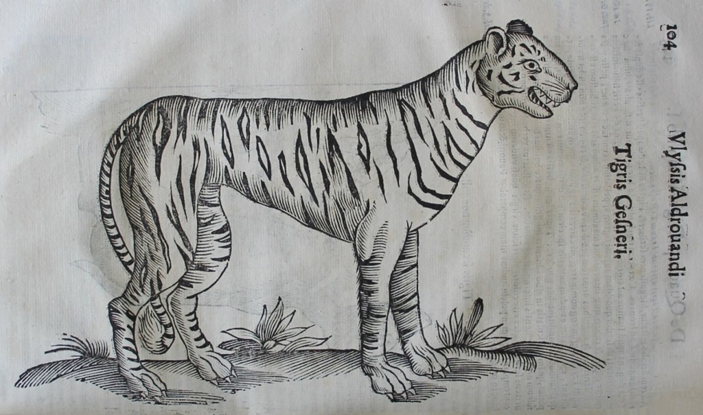Image 1: Ulisse Aldrovandi, De quadrupedibus digitatis viviparis libri tres et De quadrupedibus digitatis oviparis libri duo Bartholomaeus Ambrosinus … collegit (Bologna, 1645), p. 104, tiger.