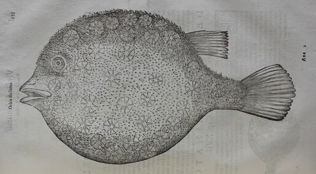 Image 3 : Ulisse Aldrovandi, De piscibus libri V.: et De cetis lib. unus. Joannes Cornelius Uterverius … collegit. Marc. Antonius Bernia in lucem restituit (Bologna, 1638), p. 555, puffer fish.